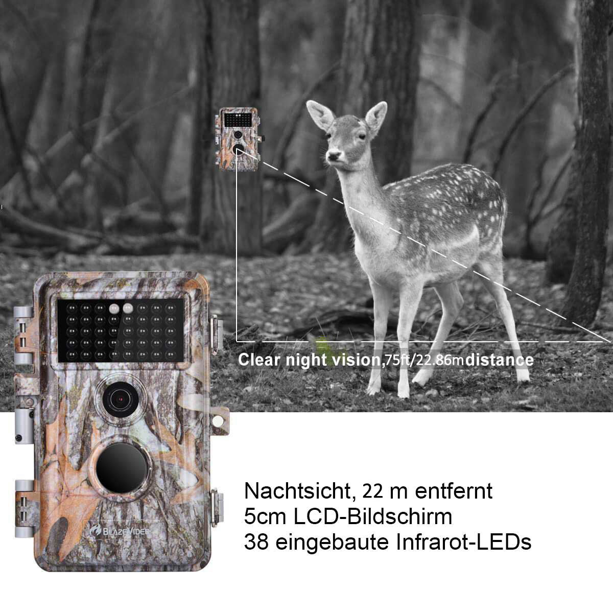 Hier ist, was Sie für die 4-tlg. Fotofalle 64MP 1296p mit Bewegungsmelder Nachtsicht Max. Entfernung bis 75Füße, 0,3s Schnelle Trigger Geschwindigkeit , IP66 Wasserdichter| A252 erhalten
