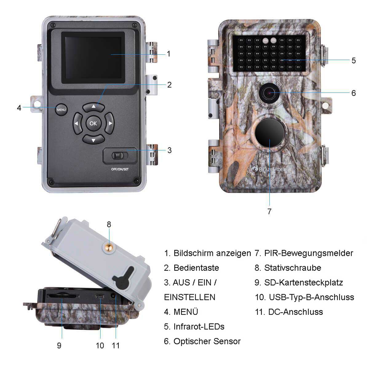 Das Tarndesign macht die Kamera für die Wildtierbeobachtung und -forschung unsichtbar. Sie eignet sich ideal zum Laufen oder Erkunden als Sportkamera und kann sogar als Sicherheitskamera zu Hause eingesetzt werden.