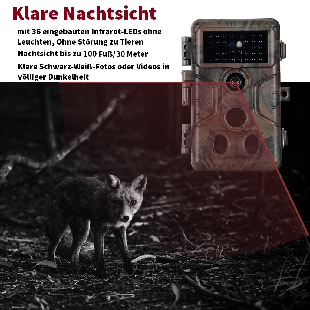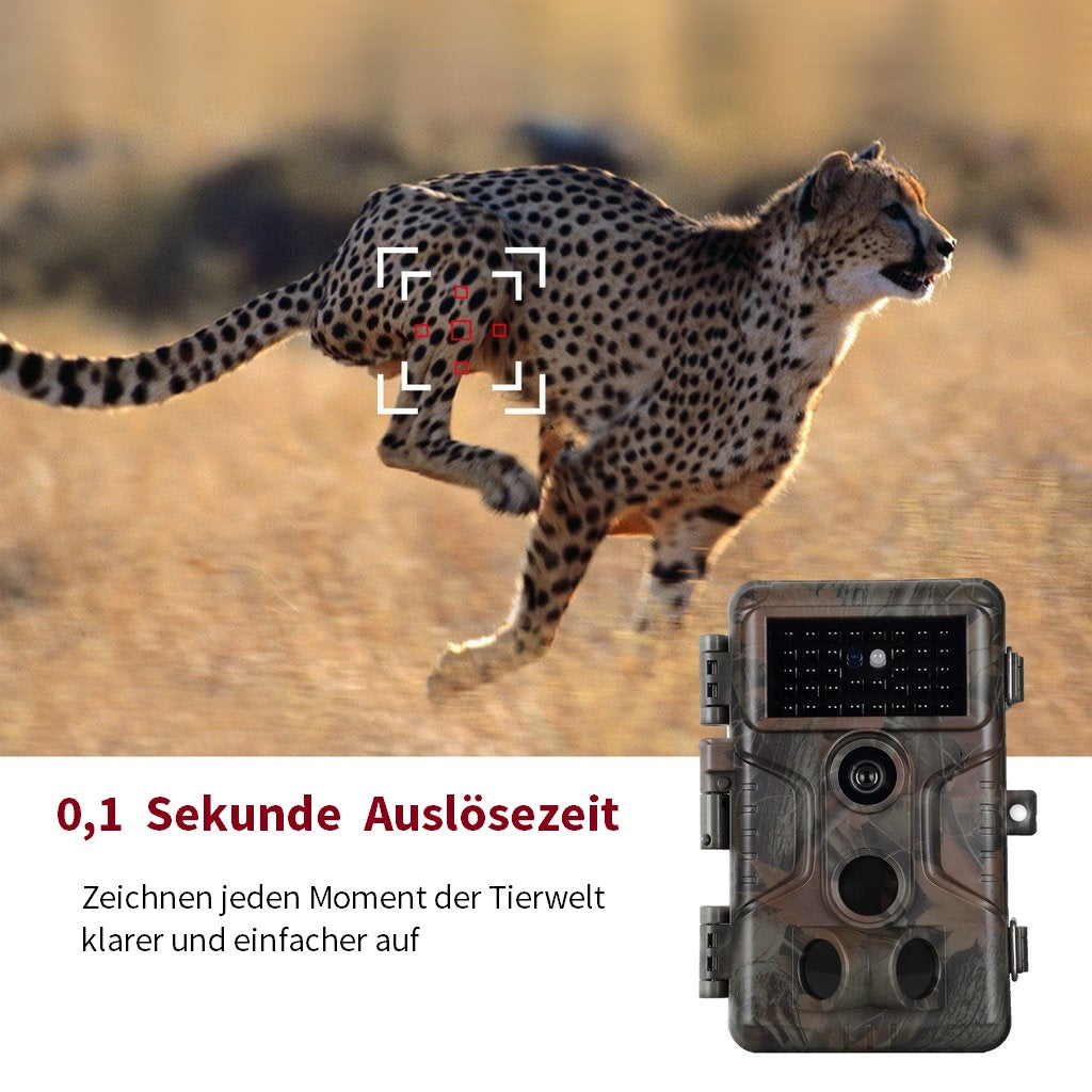 Voraktivierungstechnologie für 0,1 Sekunden Auslösung, 0,5 Sekunden schnelle Wiederherstellungszeit, um sicherzustellen, dass Sie keinen Moment verpassen. Die Pro-Wildkamera hat eine längere Nachtsichtdistanz von 100ft/30m und eine Auslösedistanz von 82ft/25m.