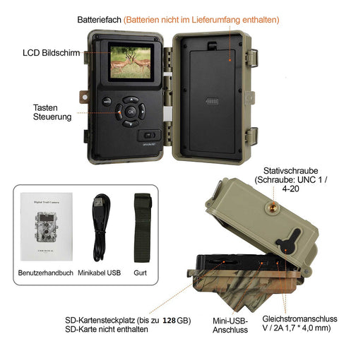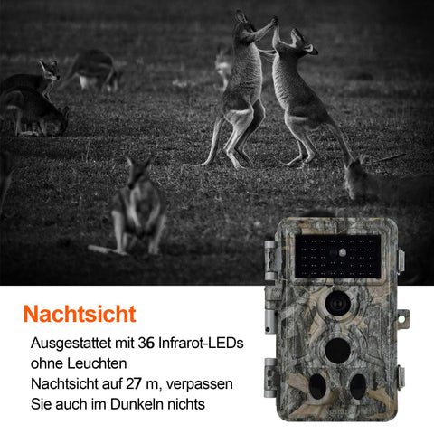 Das Tarndesign macht die Kamera für die Wildtierbeobachtung und -forschung unsichtbar. Sie eignet sich ideal zum Laufen oder Erkunden als Sportkamera und kann sogar als Sicherheitskamera zu Hause eingesetzt werden.