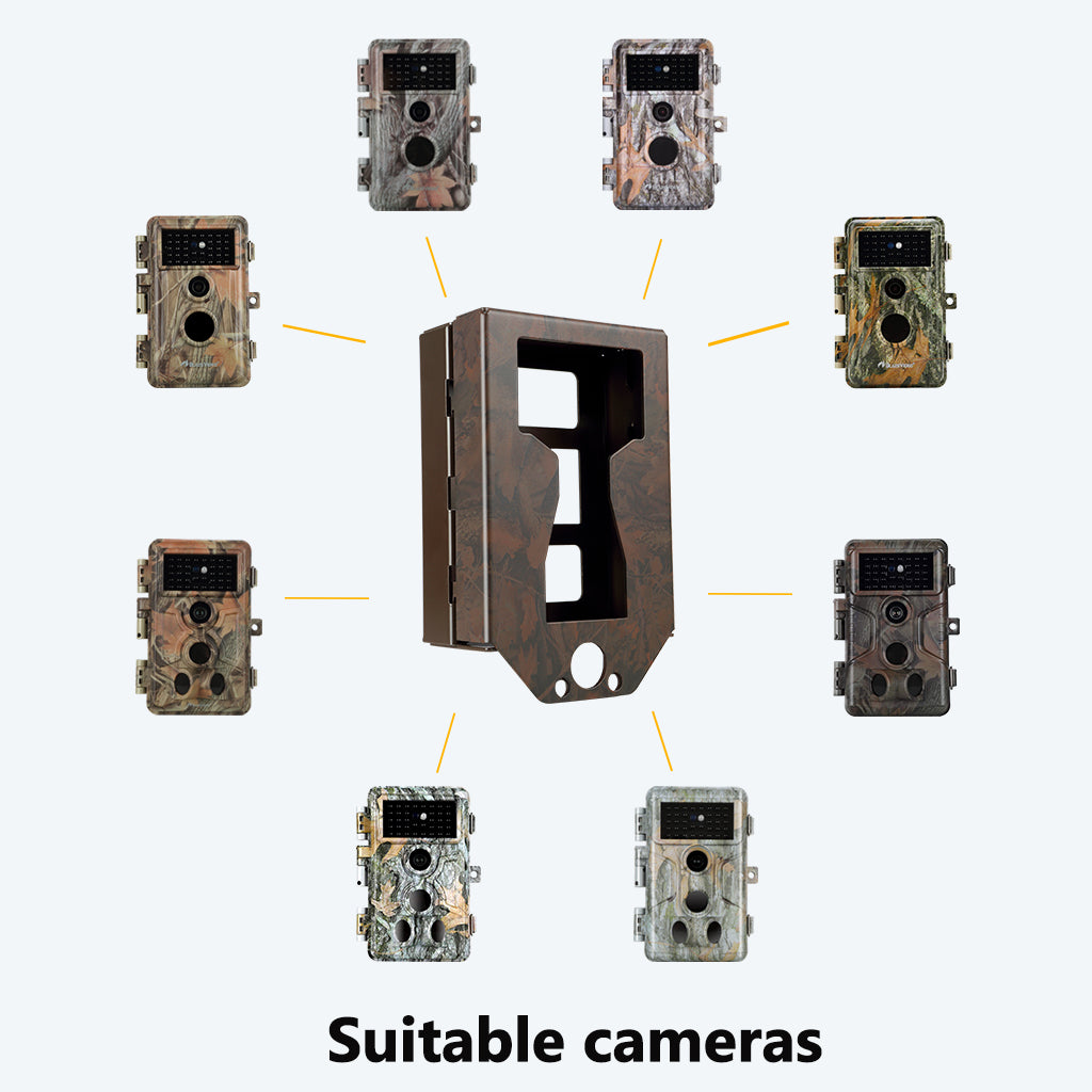 Cette housse de protection ou cage métallique pour caméras de chasse avec camouflage est compatible avec :