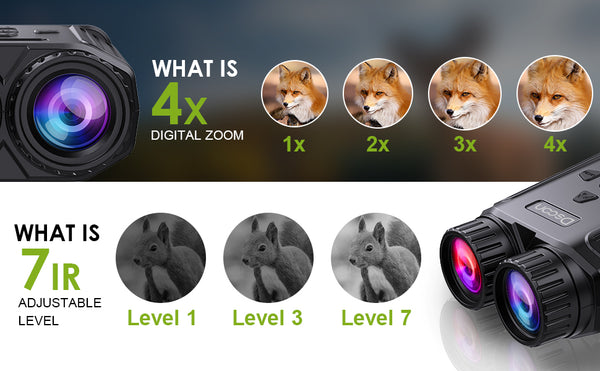 • VISION NOCTURNE LONGUE DISTANCE À LA LUMIÈRE DES ÉTOILES : Le dispositif de vision nocturne binoculaire, couplé à un illuminateur infrarouge, offre une visibilité jusqu'à 250-300 m dans l'obscurité totale, offrant une image nette en noir et blanc. Par faible luminosité ou en plein jour, la visibilité peut s'étendre de 3 m à l'infini.