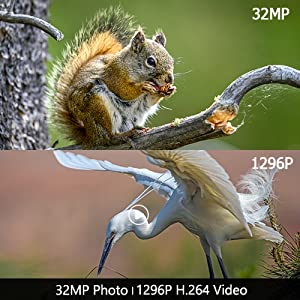 Erfassen Sie Bilder mit bis zu 64 MP und Videos mit 1296P, wenn eine Bewegung erkannt wird (nachts monochrom). Wählen Sie die gewünschte Auflösung für Fotos von 4 bis 64 Megapixel und die Videoauflösung (Pixel pro Bild). Ausgestattet mit einem optischen High-End-Objektiv mit 70° Weitwinkel und Verzeichnungskorrekturtechnologie sowie einem fortschrittlichen Bildsensor, der perfekte, klare 64-MP-Bilder und 1296P H.264 MP4 HD-Videos aufnimmt.